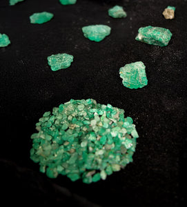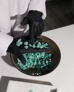 Buscamos tonos que nos conmuevan, verdes que conecten con nuestras raíces, con nuestra tierra y con esa intensidad que solo se encuentra en las esmeraldas colombianas. Preferimos un verde vibrante, profundo, que no siempre necesita pulirse para destacar.